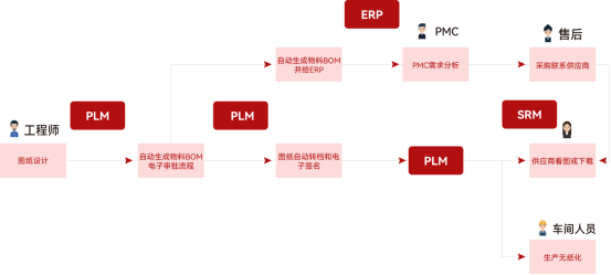1. 产品数据管理(PDM):集中存储和管理CAD文件、BOM(物料清单)、工程变更等结构化数据。