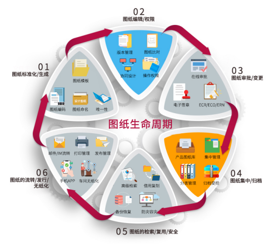 针对上述难题,三品图纸管理系统以“全流程管控、智能协同、安全闭环”为核心,构建适配机械制造企业需求的精准管理体系,实现机械图纸从设计到归档的全生命周期规范化管理,具体解决方案如下: