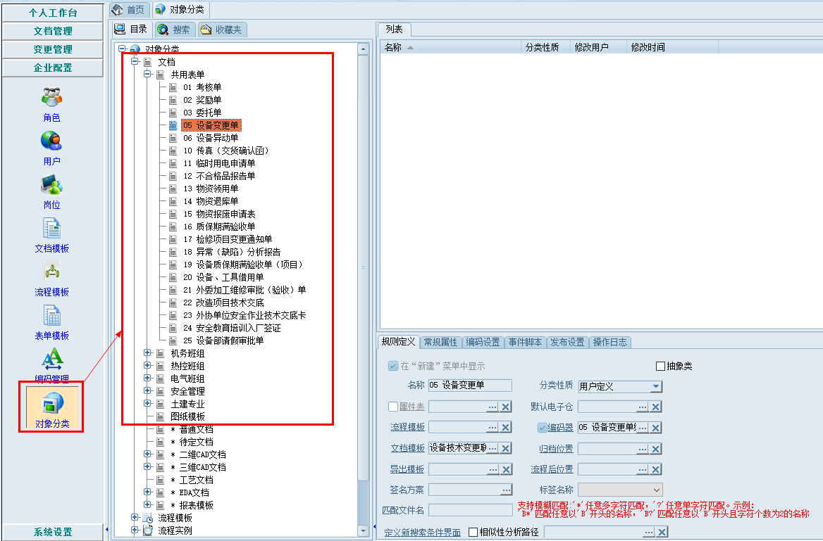 结合企业规范化、标准化管理要求, 在EDM系统内定制了各类文件模板,并建立相应模板及对象分类,便捷地创建各类规范的文件资料,同时也方便检索。