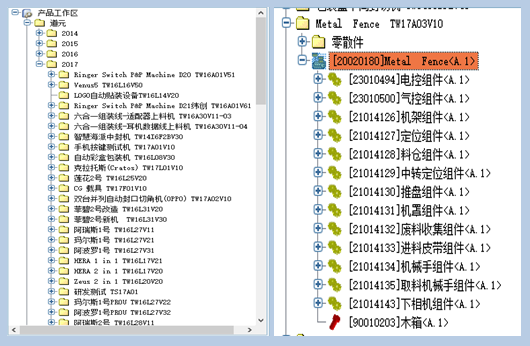 管理好几十种企业的通用产品系列,形成基于通用产品系列的快速变型设计。设计人员可以即时接触到最新最全面的技术数据,结束以往设计人员各自为政的局面,设计人员点击相应的产品BOM即可获取关联的设计图纸进行设计,并可看到各种变更信息和零部件使用情况。