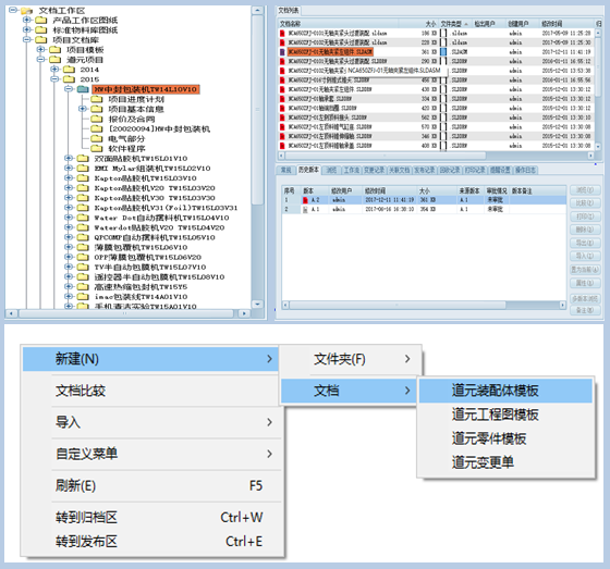 三品PDM的图文档管理涵盖道元整个企业的图纸、技术文档的创建、草拟、审批、发布、归档、变更、废止等生命周期的管理。整个企业以三品PDM中的图纸、文档为准,从创建文档的那一刻起就纳入系统中进行规范管理,包括文件的名称和文件使用类型等等,脱离三品PDM以其他方式存在的图纸和文档一概不获得企业承认。