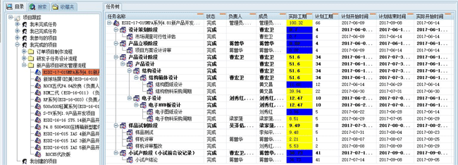 6、项目过程树状结构体现,主管能够直观的查看项目进度;系统提供人员负荷分析表,在任务分配上协助主管合理调配资源;给类项目数据报表,可对维度体现项目数据,提高项目管理水平。