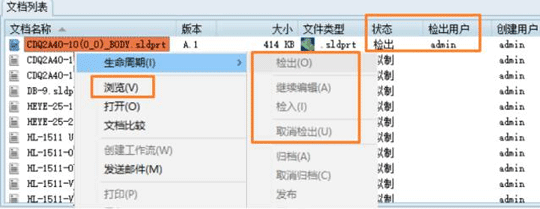 系统通过检入/检出操作来控制数据的并发性。当某一数据被检出时,系统会显示该数据已被某人检出,并禁止其他人员检出该数据(检出菜单变灰色)。此时,除了数据检出者外,其他人只能浏览,而不能修改该数据。这就解决了数据的并发性问题,避免因同时更改数据而引起混乱。