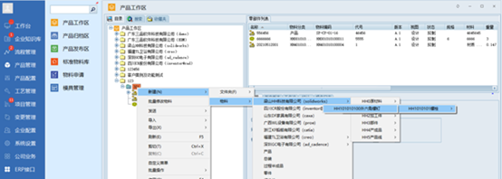 第二种是在产品工作区,右键新建物料时,选择对应分类,生成符合企业规则的物料编码。