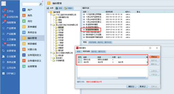 在形成符合规则的物料编码时,还需要设置和绑定各种分类的编码器,才能自动或按条件生成编码。