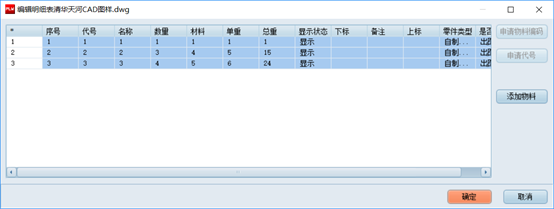 点击“添加物料”从PDM中选择物料添加到此明细表中: