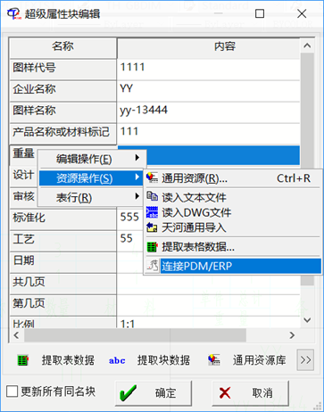 选中所有行,选择资源操作—“连接PDM/ERP”: