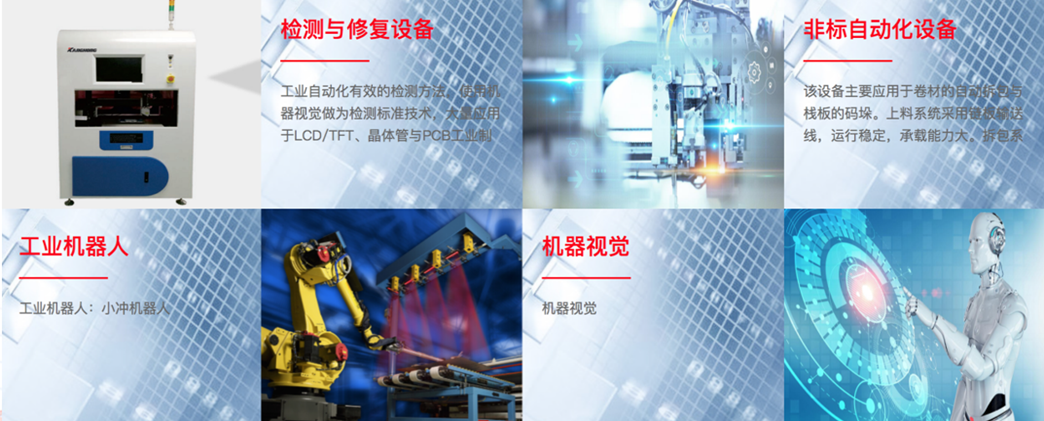 公司大力投入技术创新,康鸿智能业务涵盖3C消费电子类行业、光电显示及汽车新能源等高端制造。为客户提供非标自动化设备、智能检测与修复设备、高精密尺寸检测、机器人集成应用及自动化线体装备。康鸿智能不仅为客户提供高精度、柔性化的智能硬件,同时大力推动客户信息化、数字化、智能化工厂的解决方案。