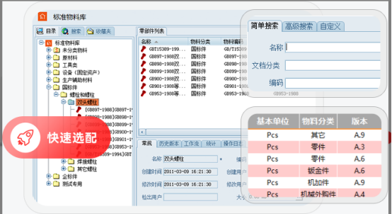 2、物料管理:针对物料标准化低、新物料随意增长等痛点,三品PLM系统建立企业级标准物料库,支持多维度分类(如自制/外购、结构件/电气件)。通过层级编码和模糊搜索提升检索效率,并与历史图纸自动关联。新增物料需经申请流程审核,系统自动比对历史数据避免重复,确保物料编码和属性的唯一性。