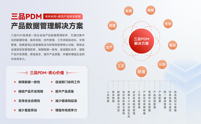 PDM产品数据管理系统是制造业和工程领域中用于管理产品全生命周期数据的核心信息化平台。它通过集中存储、组织和控制与产品相关的所有信息,确保数据的一致性、安全性和可追溯性。以下将详细阐述PDM系统的常见功能模块及其技术作用。