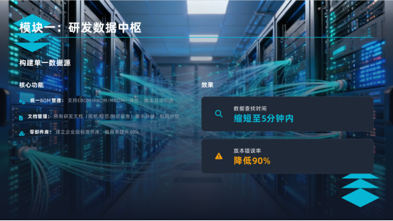 ●量化成果:设计数据查找时间减少70%,版本错误率降低90%,设计复用率提升25%以上。