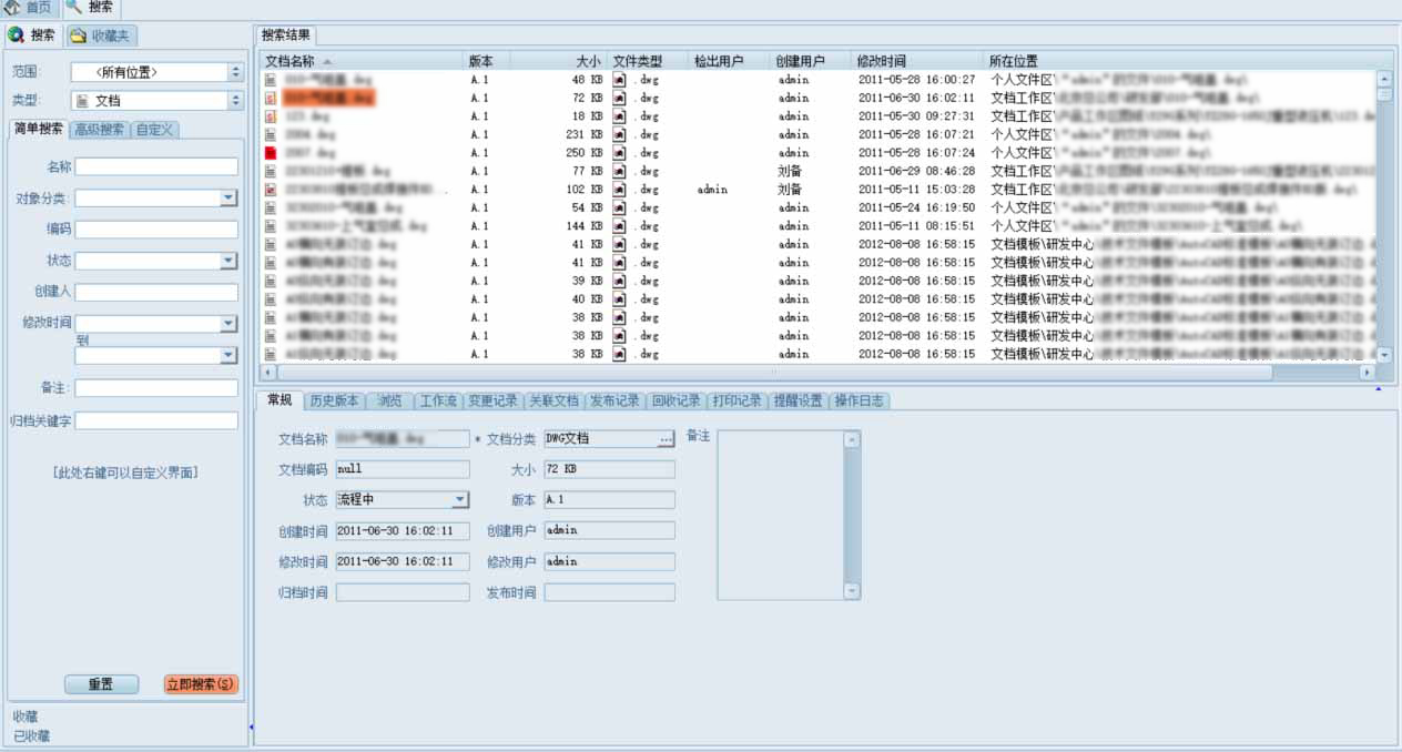 a. 三品EDM搜索引擎不单为零部件、图纸、文档等提供查询功能,对于人员、角色、机构、项目、工作流任何对象同样提供查询功能,强大的搜索引擎功能把产品研发过程中的人和物等对象类型在任何需要的地方都能筛选出来。用户再不用“满世界”找资料了;