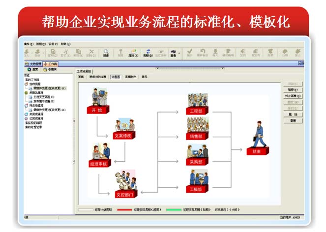 b. 工作流程管理能够在员工之间、部门之间以及企业内部自动地实现工作的流动、文档的流动以及任务的流动,同时提供强大的管理和跟踪能力,帮助企业主管了解和监控工作的进展状况和完成状况,加快审批过程和更改过程。工作流程使 “企业规范管人”成为可能,也改善了人与人之间、部门与部门之间的信息流动效率;