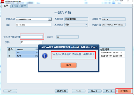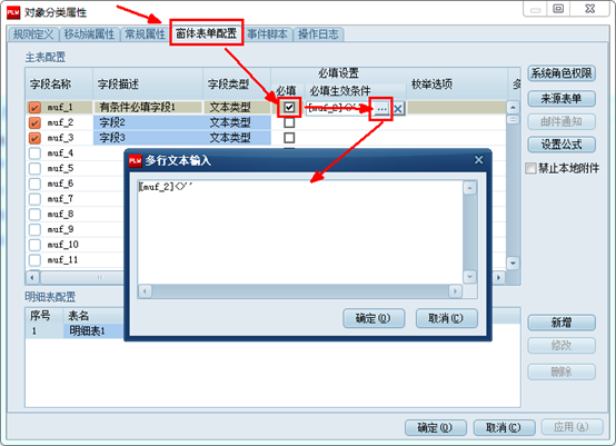 窗体表单明细表有条件必填字段,设置方法与主表有条件必填字段设置方法类似。