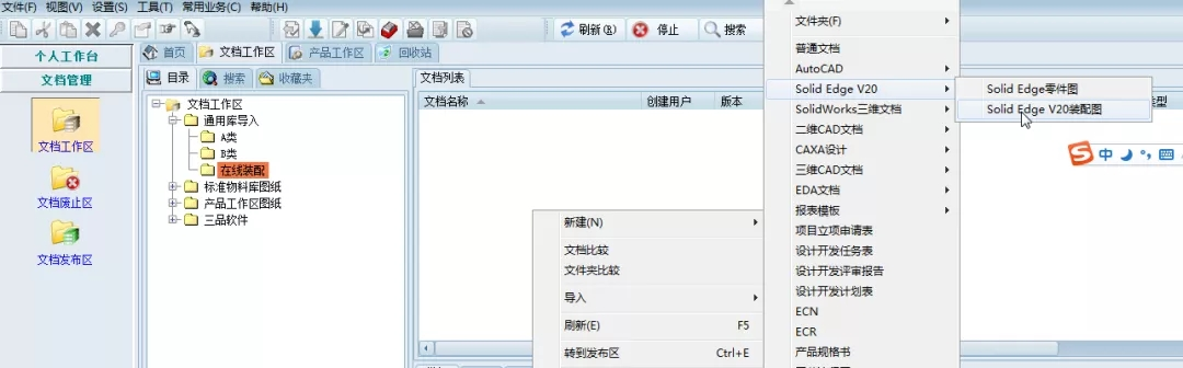 为了更好解决在设计过程中装配出现的问题,可以借用PDM系统中的零部件图纸在Solid Edge软件中快速装配,也可以利用PDM系统中的零部件图纸在Solid Edge软件中快速替换装配体中的零部件。