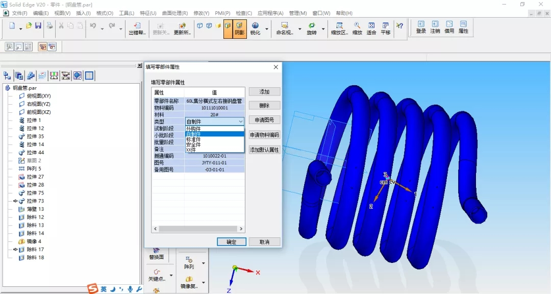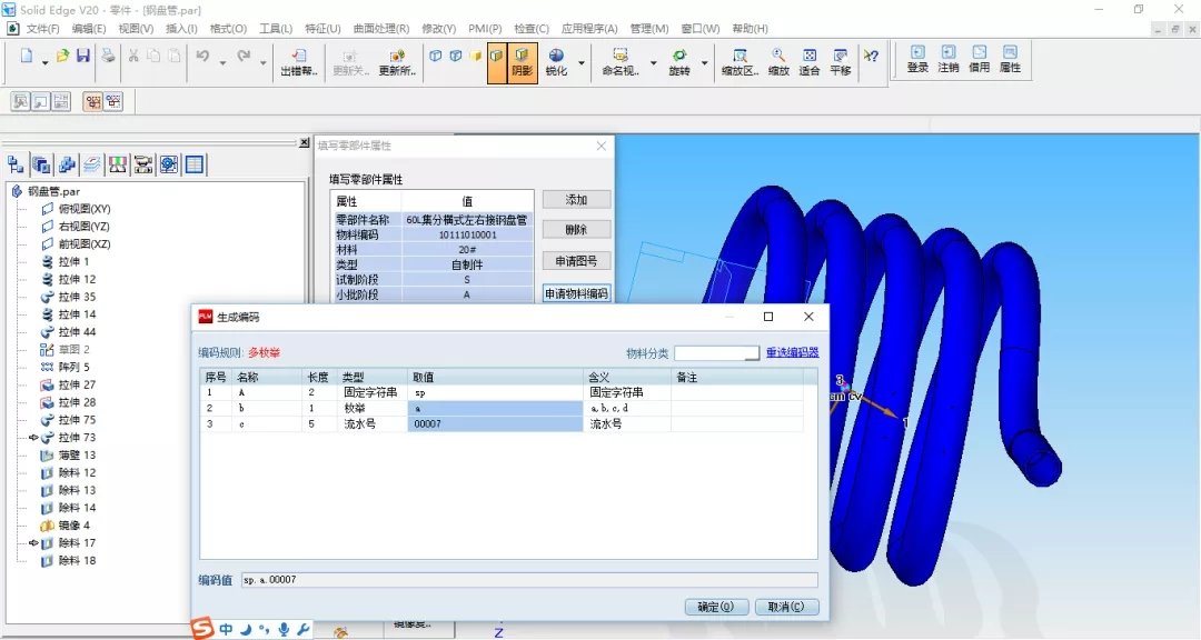 示例:在设计软件中能领取PDM系统的物料编码