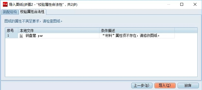 示例:不符合规范的图纸进入PDM系统时系统会提醒