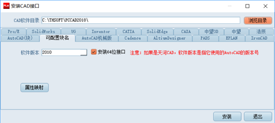 选择天河CAD的安装目录、软件版本等,点 “安装”完成接口的安装。