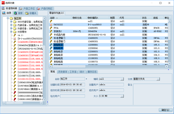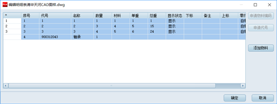 点击“添加物料”从PDM中选择物料添加到此明细表中: