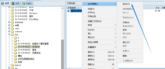 打开文档工作区,选择一个天河CAD图纸文件,右键—生命周期--检出