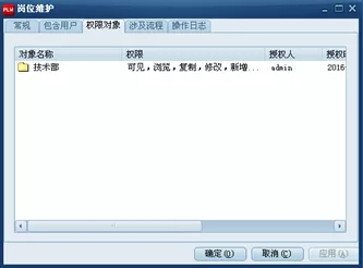 【权限对象】标签下,会显示该岗位所具有的权限。