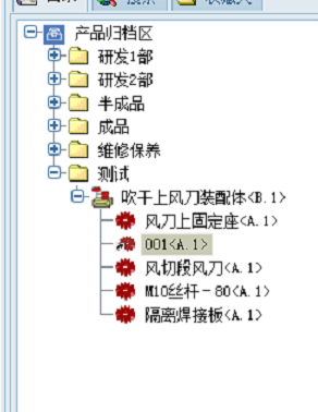 以下显示了变更前与变更后的物料对比,左图(图9)为变更前,右图(图10)为变更后,变更操作是001物料替代了热风风刀固定座,仅为演示,如下两图所示: